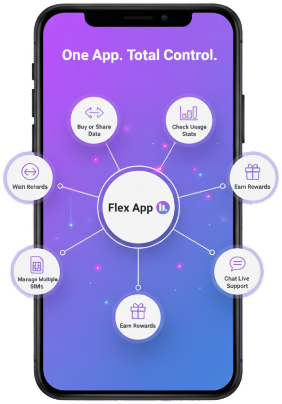 With the Flex App, you’re in charge. Track your usage, recharge instantly, buy data, earn rewards, and get support, all in one place.